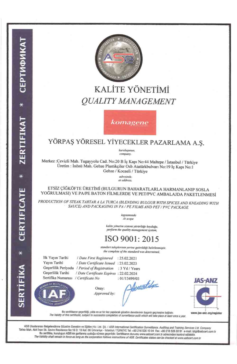 Uluslararası Gıda Standardı Belgesi (BRCGS)